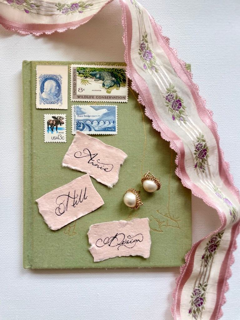 One of my favorite past times is antiquing. Almost every little thing in my home has come from.an antique or thrift store, and that is my favorite part about it. These things are so unique, hold history, and tell a story about where they came from. In fact, a lot the designs found in my work are influenced by the architecture and design found not only in history and books, but the wonderful “bric-a-brac” that I have sourced in my own life. From ornate frames, to different painting techniques, there is so much inspiration in each piece. Being surrounded by such beautiful work — and always being on the hunt for it — keeps my creativity sparked and allows Annie Hill Design to keep producing new, one-of-a-kind pieces for the one-of-a-kind days that are worth remembering.